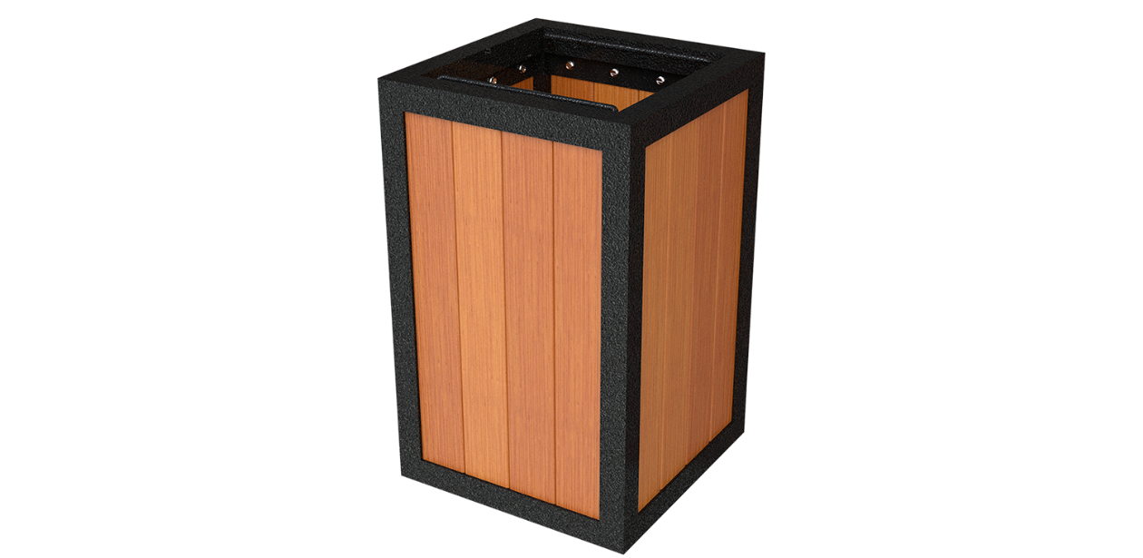 Bote fabricada en estructura de PTR de acerocon acabado en pintura electrostática. Vista de madera tropical para exteriores dándole mayor durabilidad al producto.