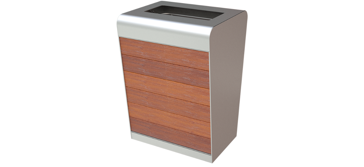 Bote fabricado en estructura de lámina y ángulo de acero con acabado en pintura electrostática. Vista de madera tropical para exteriores dándole mayor durabilidad al producto.
