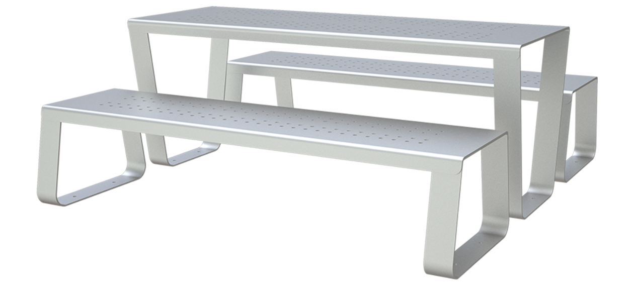 Mesa picnic fabricada en estructura de solera y ángulo, con asiento y mesa de lámina de acero con acabado en pintura electrostática dándole mayor durabilidad al producto.