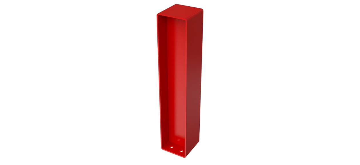 Bolardo fabricado en solera y placa de acero con acabado en pintura electrostática dándole mayor durabilidad al producto.