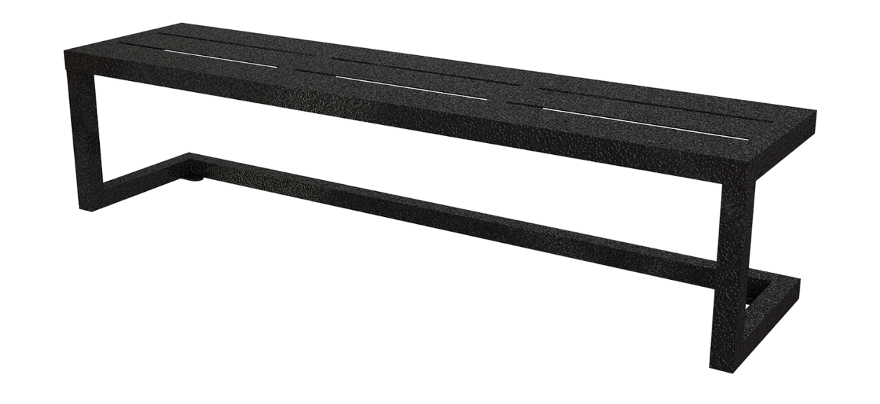 Banca fabricada en estructura de PTR con asiento de lámina de acero con acabado en pintura electrostática dándole mayor durabilidad.