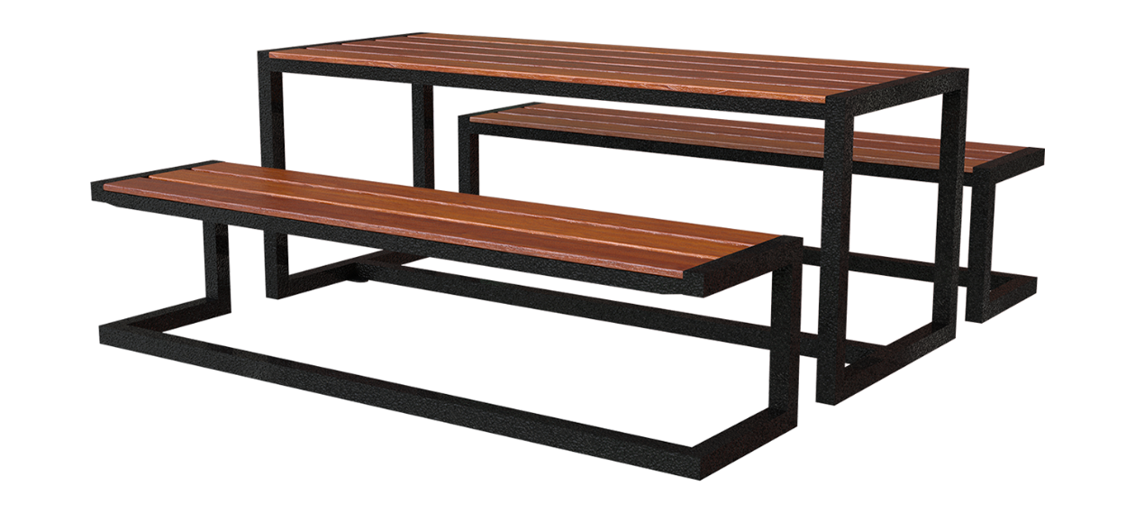 Mesa picnic fabricada en estructura de PTR de acero con acabado en pintura electrostática.
