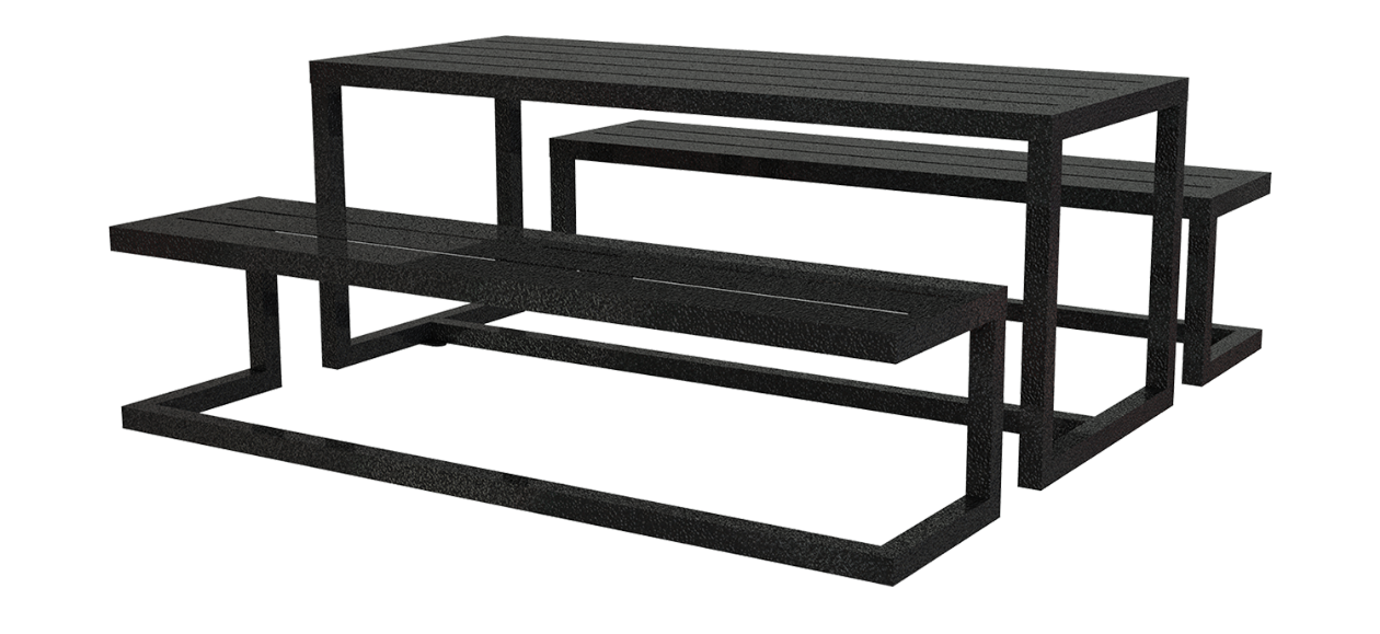 Mesa picnic es fabricada en estructura de PTR con asiento y mesa de lámina de acero con acabado en pintura electrostática dándole mayor durabilidad.