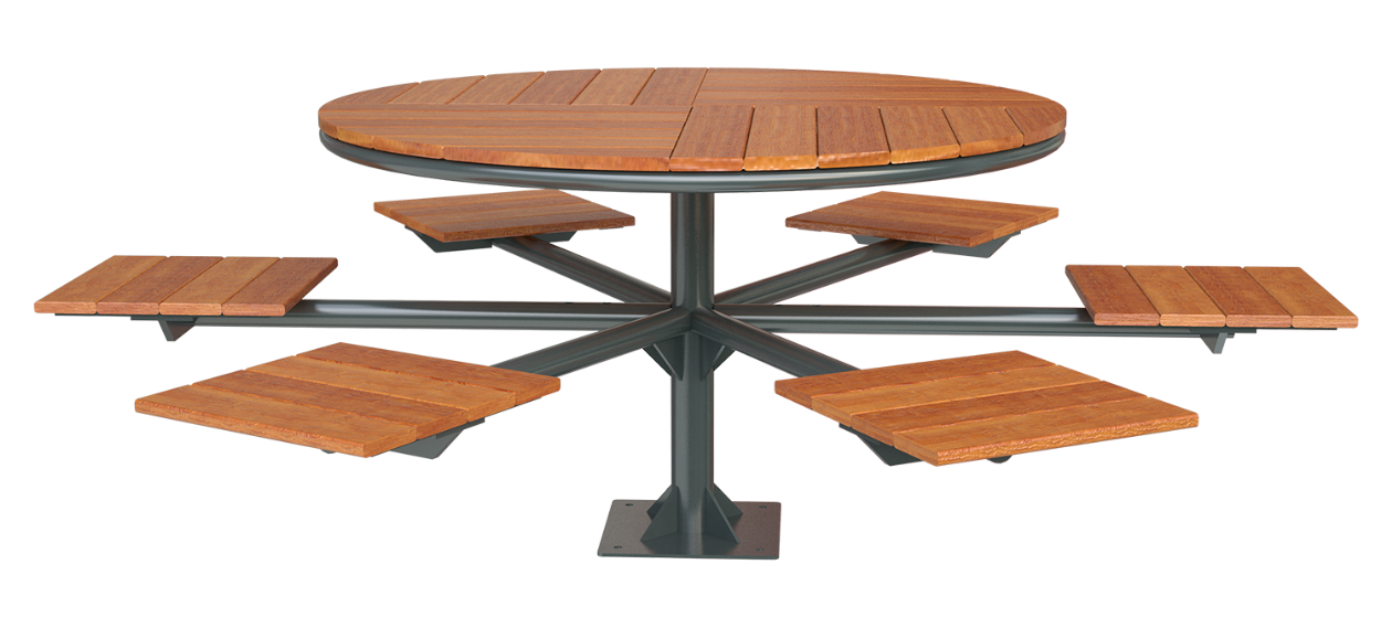 Mesa picnic fabricada en estructura tubular, placa y ángulo de acero con acabado en pintura electrostática.